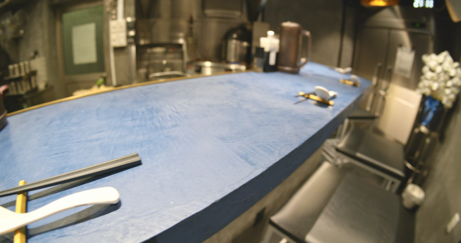 (大森)金色のスープのラーメンが、どういうカウンターの色にしたら一番映えるだろうかみたいなところから、今の内装が出来上がって、という感じですね。