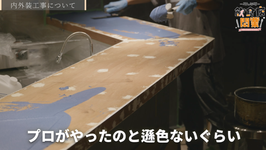 (重村さん)そうですね。一番目立つのはカウンターだと思うんですけど、「モールテックス」という他の飲食店とかで使われているような良い素材、ちょっと質感があって上質のやつなんですけど、これを業者さんに塗っていただくってなると、手間と日数がかかるのでその分すごく費用が高いんです。幸い、時間だけは私もあったので、他のもので色々練習した上で、5回目ぐらいで本番(カウンターの塗装)をやりました。