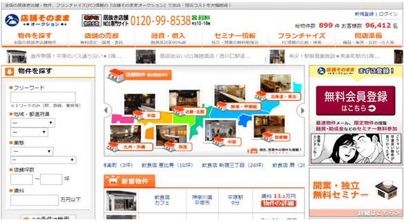 下の居抜き店舗専門サイトは全国に対応し、13万人以上の方が利用しています。