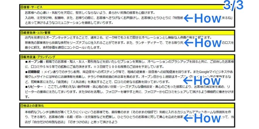 「他店との差別化」を意識して、集客に関わる部分についてできる限り明確にしていただくと良いかなと思います。